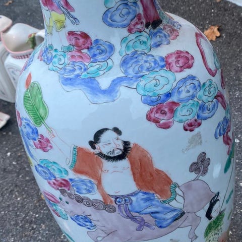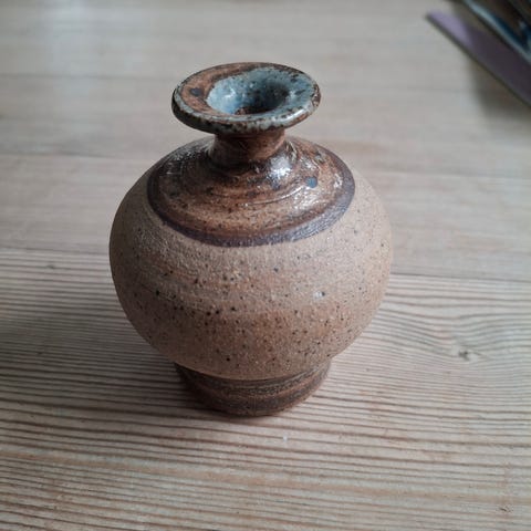 Eldre vase i keramikk selges.