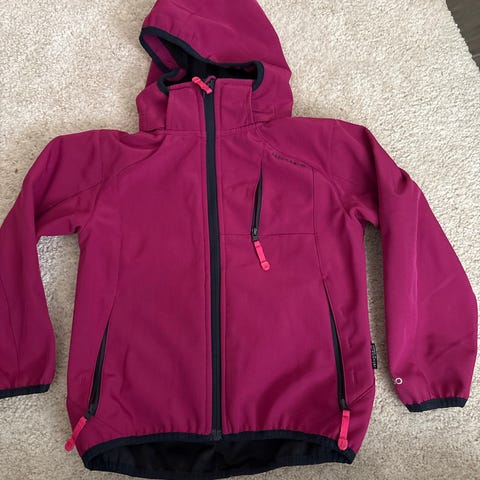 Overgangsjakke i lett softshell materiale med behagelig nettingfór for lek og aktive dager i barnehagen. Vanntett, vindtett, ventilerende med avtagbar hette og refleksdetaljer. Vannsøyle: 8000 mm.
