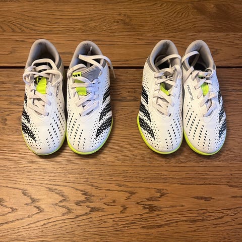 Adidas F10 fotballsko for barn i størrelse 31. Skoene har en kombinasjon av turkis og rosa farger og er laget for bruk på fotballbanen. Materialet og designet er tilpasset barn og gir støtte og komfort under spill.