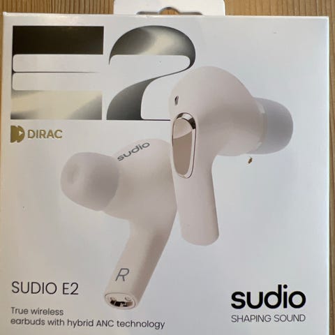 Sudio E2 trådløse ørepropper i kremhvit farge. Leveres med ladeetui. Inkluderer aktiv støydemping (ANC) og dual-mikrofonteknologi for bedre samtalekvalitet. Opptil 35 timers batteritid med ladeetuiet. Komfortabel passform med silikonpropper i ulike størrelser.