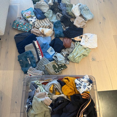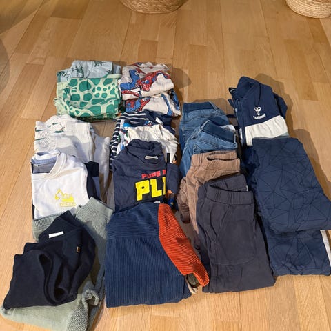 barneklær for gutt i størrelse 92. Inneholder ulike plagg i flere farger.