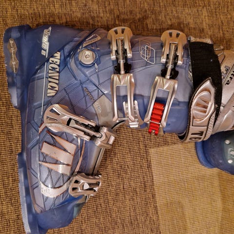 Pent brukte Tecnica PHNX 90 slalomski-støvler i størrelse 255 mondopoint (ca. EU 39/40).