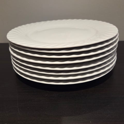 Settet inkluderer tallerkener, kopper og skåler i blå og hvit farge. Materialet er keramikk. Passer til daglig bruk og servering. En ekstra kopp med asjett følger med.