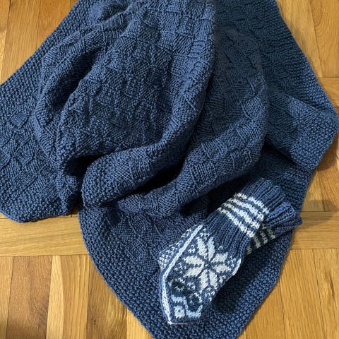 Et deilig teppe å ha over seg i vogna, senga eller bilen. For mange blir det et koseteppe.