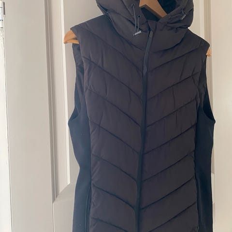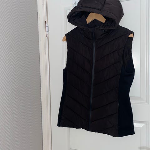 Puffer vest fra Gina Lab med en posete passform. Vesten er svart og unisex og har et materiale i gjenvunnet polyamid. Den har en vannavstøtende funksjon, en høy krage, en brystlomme med glidelås, en glidelås- og knapplukking foran og foring i resirkulert dun.