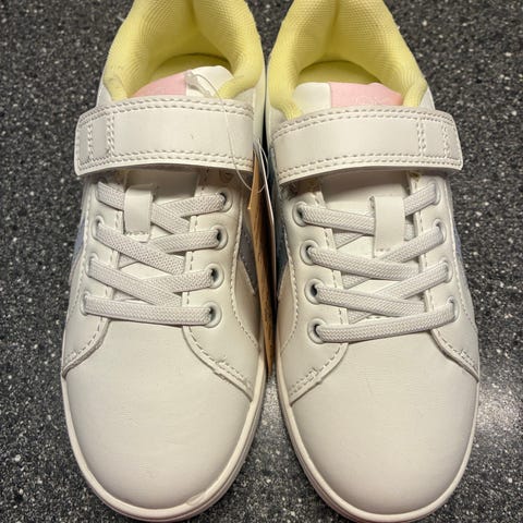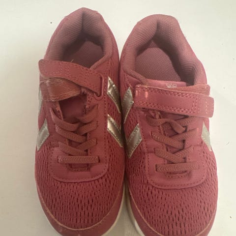 Hummel barne sko for jente i størrelse 32. Skoene har en kombinasjon av lys og rosa farge. De er laget med borrelås og snøring for enkel tilpasning og komfort. Kjøpte nye i 2024, pent brukt innendørs.