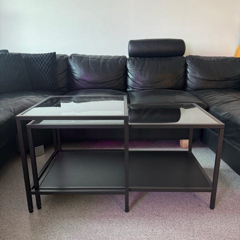 Svært lite brukt settebord (2stk). Lite brukt grunnet anskaffelse av ny sofa så bordene passet ikke til. Kjøpt på trademax for 3000, ordinær pris nå 2600. Bordet selges for 1200,-, må hentes i Olsvik.