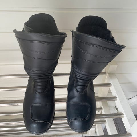 MotoX motorsykkelstøvler fra Biltema str 38. Støvlene har glidelås på siden.