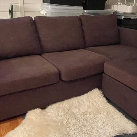 Sovesofa selges for 500 kr, Godt brukt, i god stand. Blir dobbeseng på 140 cm når slått ut. Må hentes.