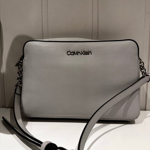 Calvin Klein skulderveske laget i lær, designet for dame. Vesken har en lyseblå farge og en justerbar skulderrem. Den har et rom med klaff og metallspenne foran, samt et innerrom med Calvin Klein-logo. Vesken er kompakt og egnet for daglig bruk.