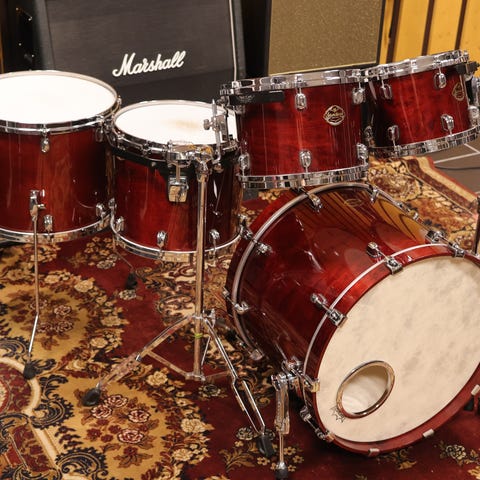 Shell: 6mm, 4-lags Birch + 2 indre lag Maple toms og skarp. 7mm, 5-lags Birch + 2 indre lag Maple på basstromme.