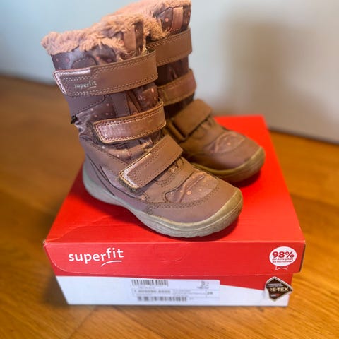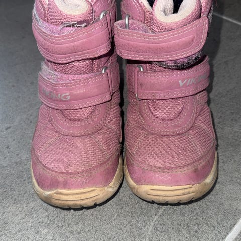 Viking lilla vinterstøvletter / vinterstøvler for jente i størrelse 30 med Gore-tex. Designet med borrelåslukking for enkel tilpasning og påkledning. De har noen svarte flekker.