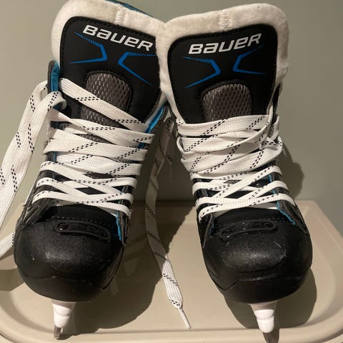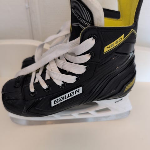 Bauer barn ishockeyskøyter i størrelse 32. Skøytene har sort og grønn farge med hvite knivblad. Designet for ishockey med justerbare stropper for god passform.