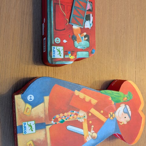 Selger diverse puslespill brett med brikker til de minste barna.