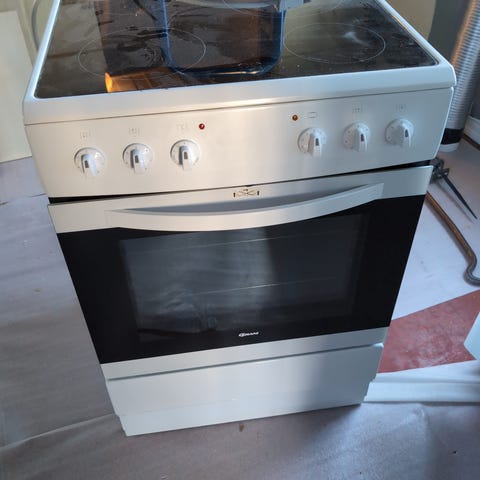 Gram keramisk komfyr med keramisk kokeplate. Komfyren selges da den medfulgte kjøpt bolig