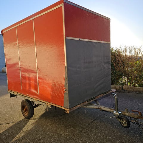 Merket 2.7 tonn og veier rundt 550kg, kan nok lastes med over 2 tonn. Lengde 4,64m, bredde 1,89m. Solid tilhenger, kan bare brukes på private veier/skog. Ikke registrert og ikke mulig å få registrert: derfor prisen er lav. Understell og dekk er nokså bra.
