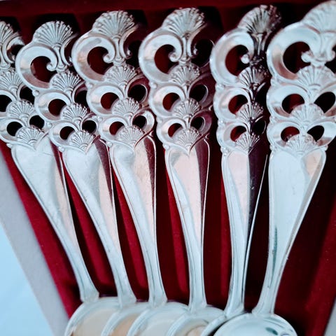 Ønsker å kjøpe pene kakegafler eller dessertskjeer i Norrøna mønster, 60g. Trenger 8 stk.til grei pris.