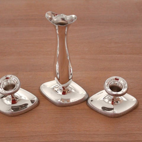 Selger solide lysestaker i norsk kvalitet sølv stemplet 830s uten gravering.