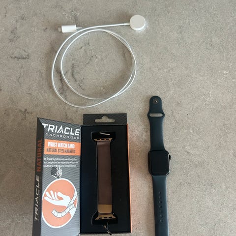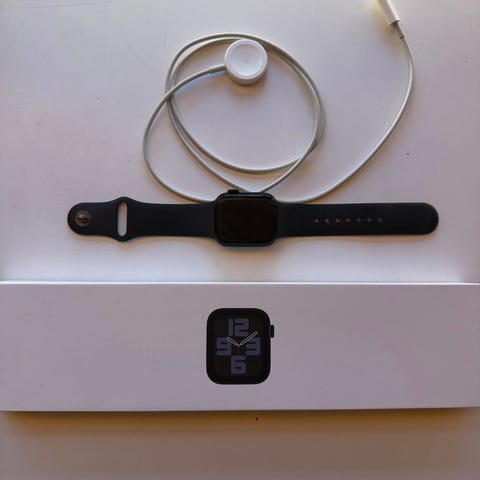 Selger min Apple Watch SE 44 mm. Kjøpt i september i 2024 og brukt jevnlig i litt over 1 år. I fargen «Midnight Alum». Noen bruksmerker på glasset (se bilder) så selges derfor rimelig. Lader følger med (usbc kabel). Funker som den skal. Selges da jeg har kjøpt meg ny treningsklokke. Er åpen for seriøse bud. Eske følger ikke med.
