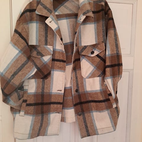 Zara Andre jakker i flerfarget ull, størrelse M for dame. Jakken har rutemønster og knapper foran. Egnet som ytterplagg i kjøligere vær.