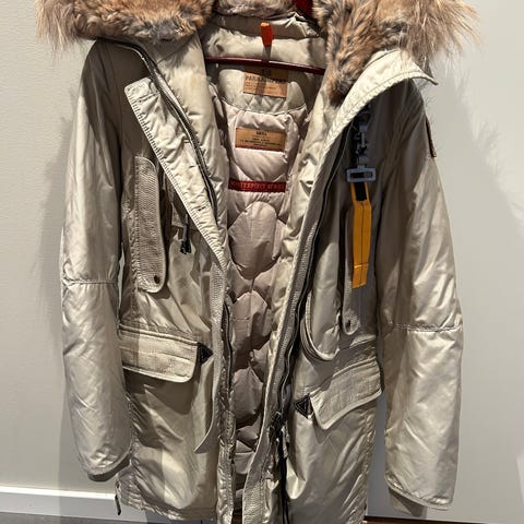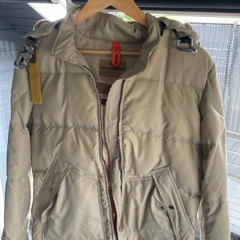 Selger pent brukt Parajumpers-jakke til dame, str M. Den ble kjøpt feil av oss brukt (trodde det var herrejakke). Den hadde et hull under høyre arm, ved siden av luftehullet, da vi kjøpte den, som nå er reparert. Se bilder for arm som ikke er sydd, kontra den som er sydd. Ellers er den hel og fin, uten flekker eller merker.