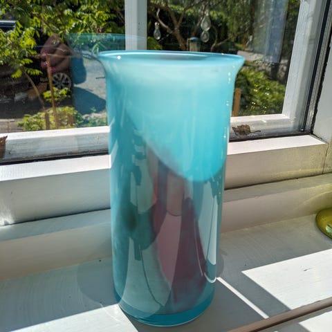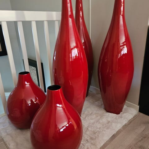 Den runde har en diameter på ca. 17cm og høyden er 16cm. Den andre vasen er litt vanskeligere å måle, så man får bruke den runde til å sammenligne 😊