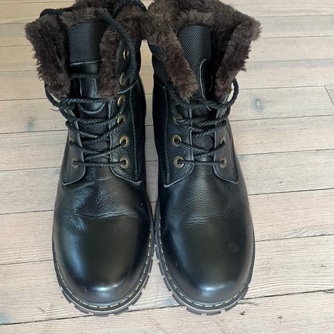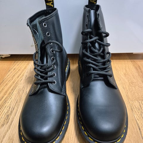 Dr. Martens støvler i størrelse 44, svart farge. Laget av slitesterkt materiale med robust gummisåle.
