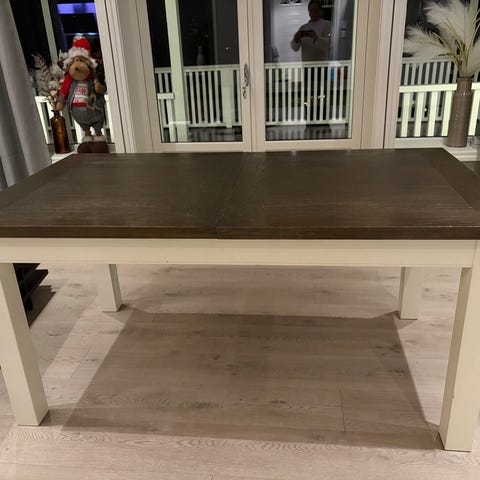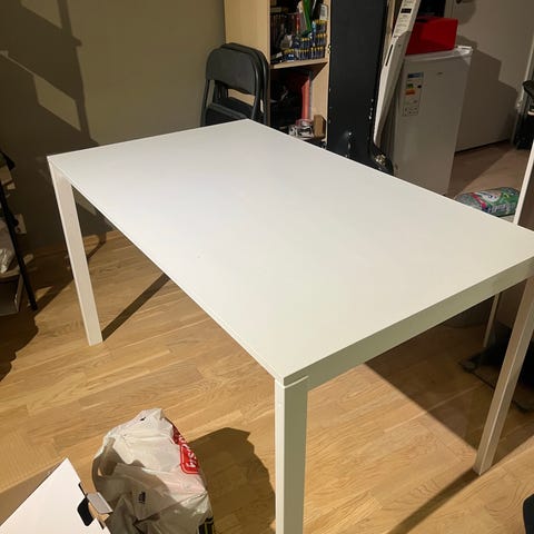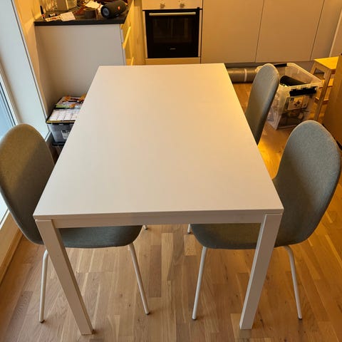 Pent brukt IKEA Malltorp hvitt 125x75cm spisebord selges demontert. Bordplata er pen, men ene øverste festet på beinene begynner å bli litt slitne etter at det er blitt montert og demontert en del ganger da dette bare er benyttet som et ekstra bord ved behov for flere sitteplasser. Stabilt og fint så lenge det ikke fortsetter med denne typen bruk og bare får lov til å stå montert.😊
