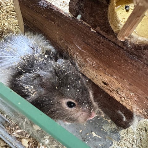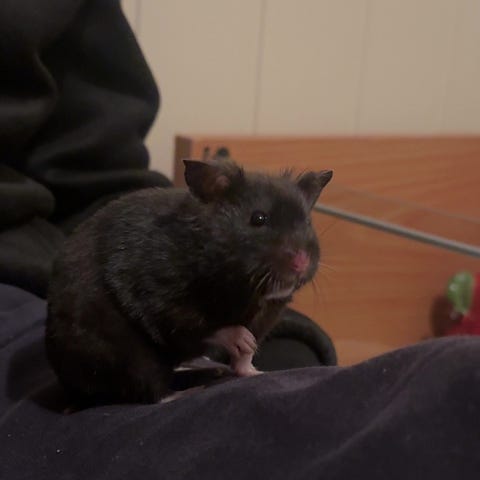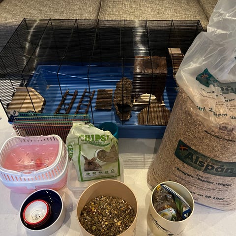 Jeg har et stort Bucatstate 2.0-bur (100 × 50 cm) med mye strø, skjulesteder og variert berikelse, og jeg er opptatt av å gi hamsteren et trygt og rolig hjem.