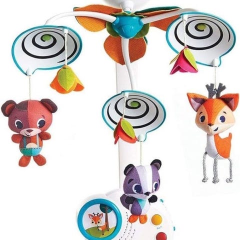 Veldig fin musikk uro som kan brukes både på seng/lekegrind og tas med og festes på bilstol/vogn. Babyen likte den veldig godt.