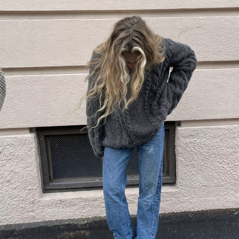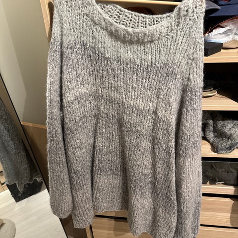 Designet er oversized, så anbefaler deg å sjekke målene med en genser du har.