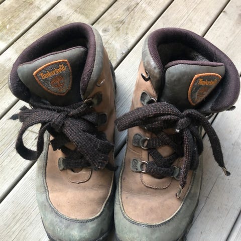 Timberland Fottur sko i størrelse 41, beige farge. Laget for fotturer med slitesterkt materiale og solid konstruksjon.