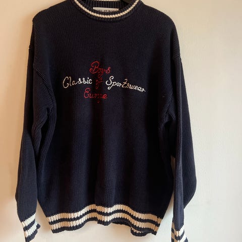 Helly Hansen Club genser i blå farge, laget av ull. Størrelse L, herre.