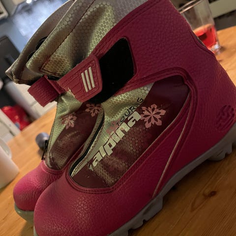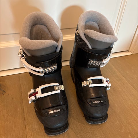 Skoene er i god stand. Lite brukt, fortsatt helt fine for barn som trenger et rimelig og trygt par til alpinbakken.