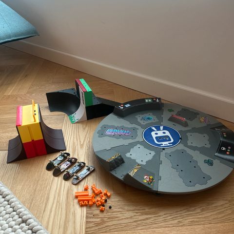 Pent brukt skatepark til finger skateboard selges. Medfølger 5 finger skateboard og diverse utstyr som skruer, hjul o.l.