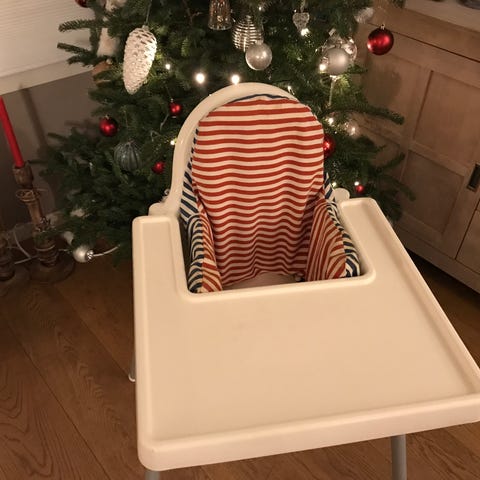 IKEA høy barnestol designet for barn. Stolen har en enkel konstruksjon med fire ben og et avtakbart brett. Den er laget i hvitt materiale og har sikkerhetssele for barnets trygghet. Passer til bruk ved spisebord for små barn.