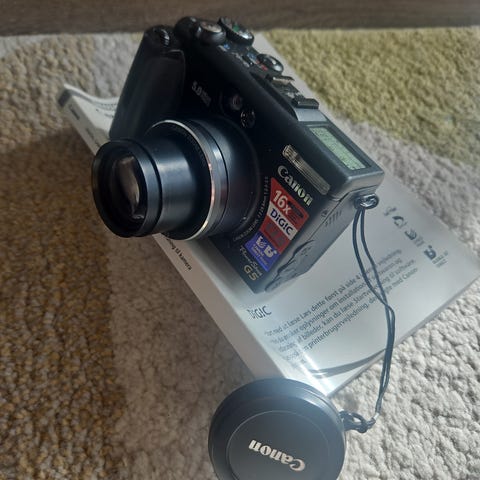 Kameraet selges for faren min som ikke tar bilder lengre. Jeg har ikke prøvd kameraet selv, og det har ligget ubrukt en periode. Håper noen kan bruke det