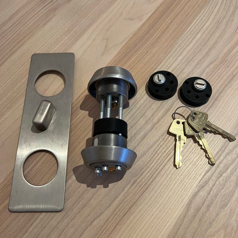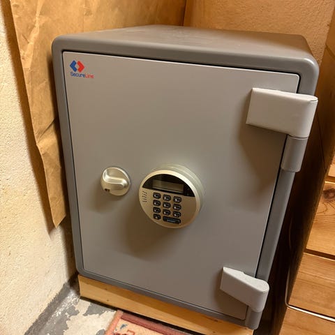 Ubrukt låskasse selges. Laget i metall med slitesterke komponenter for varig bruk.