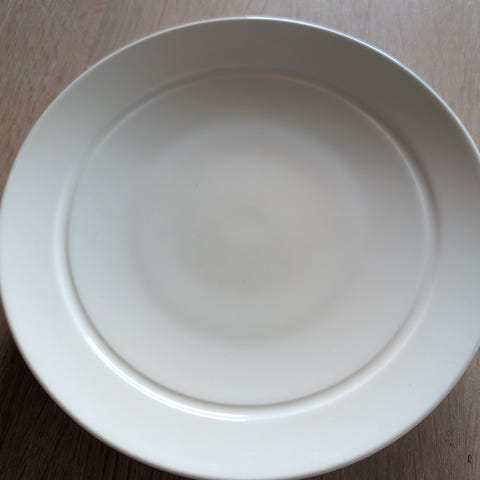 Selger 10 pent brukte dype tallerkner fra Arabia. Ca 23 cm med blå striper.
