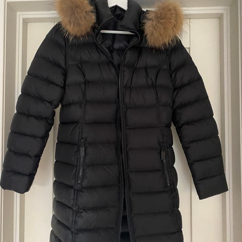 Blå dunjakke fra Haust i str 36. Litt slitasje blant annet ved glidelåsen (se bilde). Selges derfor billig.