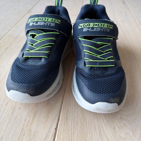 Blå Skechers blinkesko til barn i størrelse str 31. Med borrelås. Pent brukt.