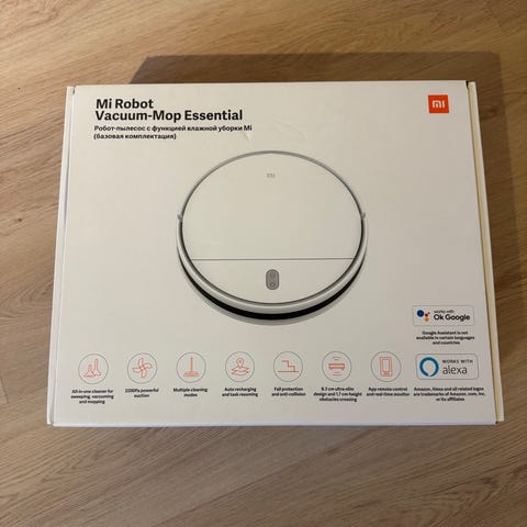 Selger en pent brukt Xiaomi Mi Robot Vacuum-Mop Essential robotstøvsuger. Denne enheten er en alt-i-ett-løsning for enkel og automatisert rengjøring av hjemmet ditt, da den både støvsuger og vasker gulvet samtidig.