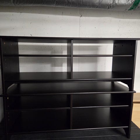 Praktisk og allsidig hylle med tilhørende skap- og skuffeinnsats. Disse kan tas ut. Noen bruksmerker. Har stått på barnerom. Helt super til oppbevaring av leker. Kurv som passer kan følge med om ønskelig. Må hentes i Bø.