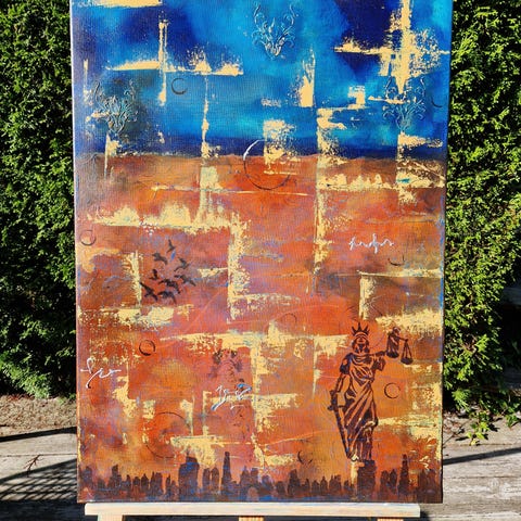Abstrakt maleri på lerret med nøytrale farger i brun, grå og beige toner. Usikker på når det er fra, men fått vite at det sannsynligvis er fra 1930-årene. Selges grunnet rydding ifb flytting. Usikker på kunstner, ikke signert. Bud mottaes, men selges fortløpende. Hentes på Galgeberg.