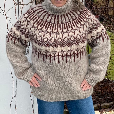 Denne utgaven er strikket i Alafosslopi.