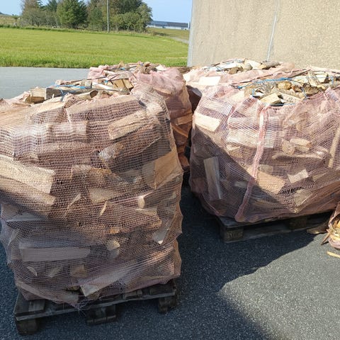 Seljeved i 60 liter sekk. Kappet i 30 cm skier. Tørket under tak i ca 1 år.