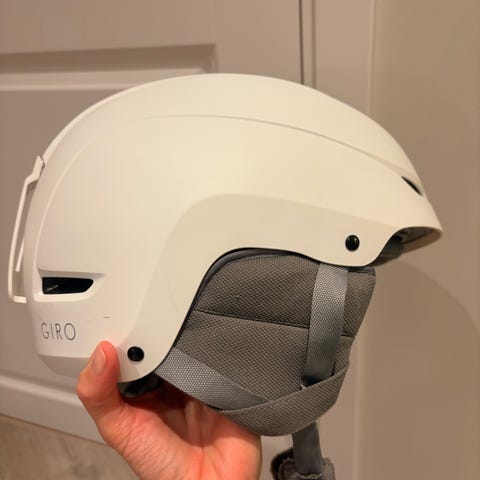 Hjelmen er brukt og har normale bruksmerker/riper i lakken (se bilder), men er hel og fullt funksjonell, ingen sprekker. God passform med polstret innside og justerbar hakestropp som sitter trygt og komfortabelt.