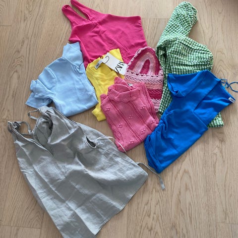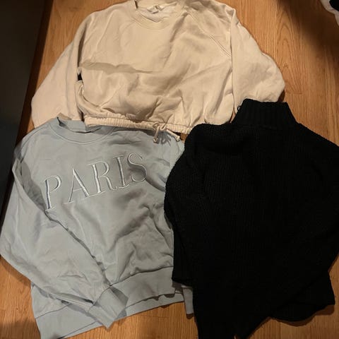 To cardigans, en topp som matcher den ene cardiganen og to bukser. Alt i størrelse XS. Selges samlet for 200kr.