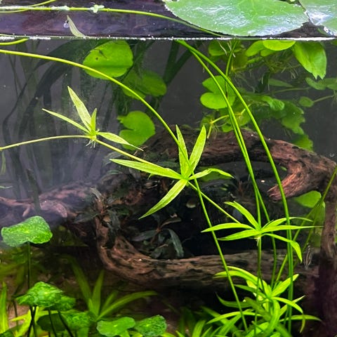 Selger små avleggere av Nymphaea Tiger lotus ”zenkeri”.