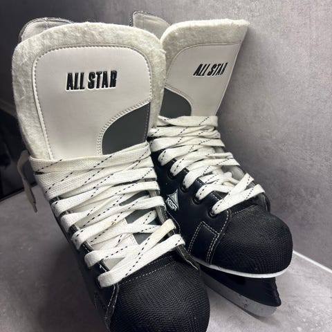Kosa All Star ishockeyskøyter i størrelse 43. Skøytene er designet for ishockey og har svart farge med hvite lisser. Passer for bruk på is for ishockeyspillere.